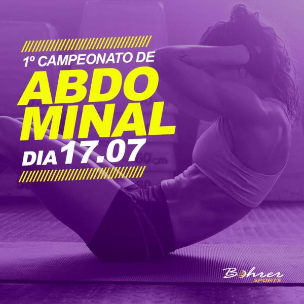 Já na terça-feira, dia 17.07, também na Bohrer, irá acontecer o 1º Campeonato de Resistência Abdominal para alunos com mais de 18 anos do sexo feminino. O campeonato consiste em realizar o maior número de repetições possível em 1 MINUTO, em um movimento completo de ABDOMINAL SUPRA, respeitando as regras e os colegas de competição.